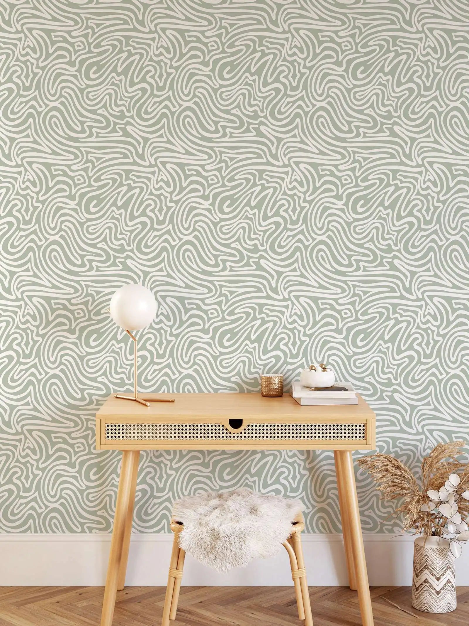 - Model Number: 5955040228 Boheme Abstract Wallpaper - Light Green